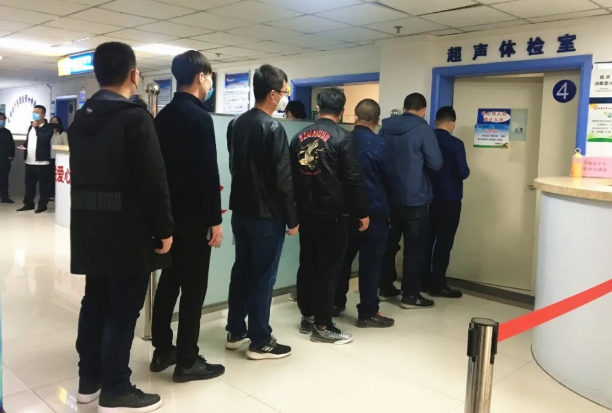 公司員工有序排隊進行超聲體檢