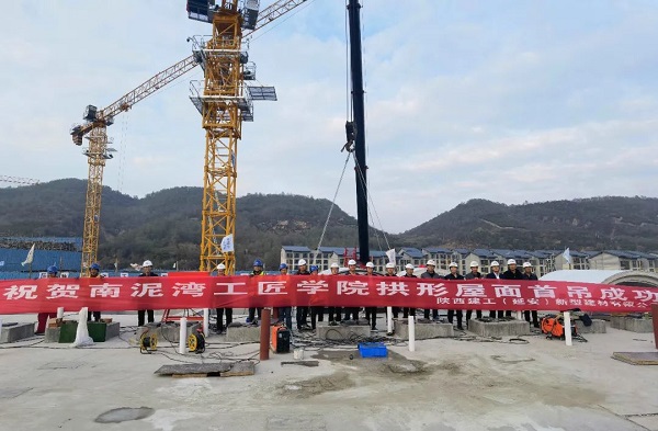延安南泥灣勞模工匠學(xué)院項目預(yù)制拱型屋面首吊順利完成