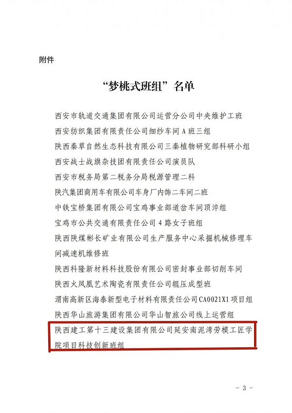 為進一步傳承和弘揚“高標準、嚴要求、行動快、工作實、搶困難、送方便”和“不讓一個伙伴掉隊”的“夢桃精神”,近日,陜西省總工會對全省50個優(yōu)秀班組進行了榮譽表彰,授予他們“夢桃式班組”榮譽稱號,集團延安南泥灣勞模工匠學院項目科技創(chuàng)新班組獲此殊榮。