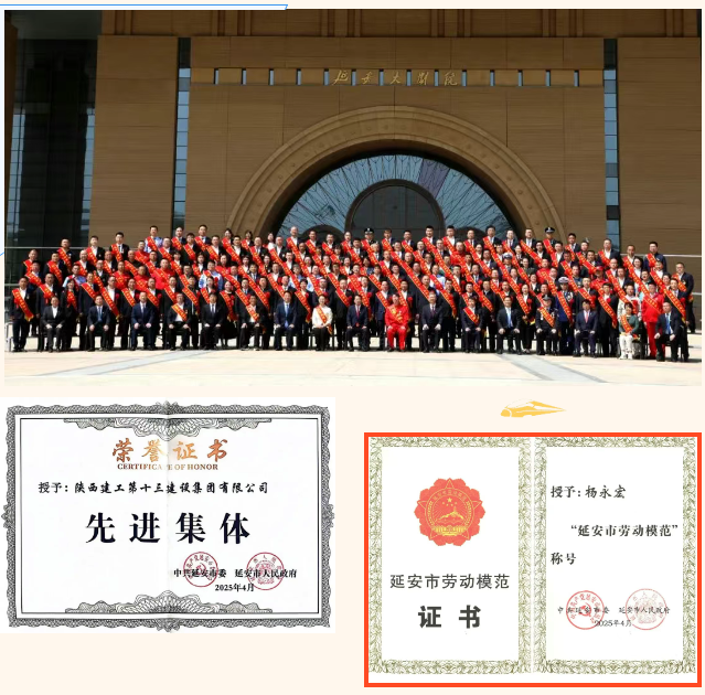 4月29日,延安市舉行勞動模范、先進(jìn)工作者和先進(jìn)集體表彰大會,陜建十三建集團(tuán)獲評延安市先進(jìn)集體,集團(tuán)黨委副書記、總經(jīng)理楊永宏獲評延安市勞動模范。