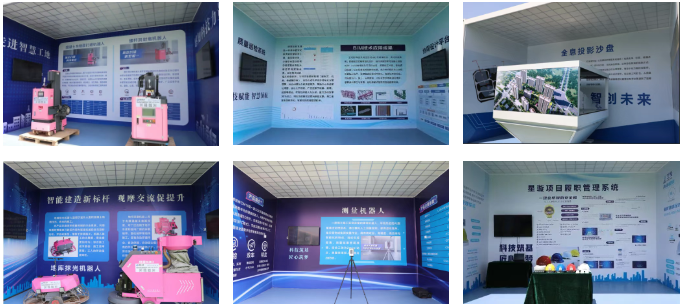 該項目緊扣智能化、數(shù)字化主題,以“設計數(shù)字化、施工智能化、管理信息化”為主線,分為“數(shù)字平臺區(qū)、智能機器人區(qū)、智能設備區(qū)、四新技術(shù)應用區(qū)、展板區(qū)”五大展區(qū),分別呈現(xiàn)了質(zhì)量巡檢系統(tǒng)、BIM技術(shù)過程管理、基坑監(jiān)測系統(tǒng)、地面整平機器人、地庫抹光機器人、螺桿洞封堵機器人、混凝土內(nèi)墻面打磨機器人、建筑清掃機器人、地坪研磨機器人、ALC墻板安裝機器人等,展示了一系列施工相關(guān)的智能建造技術(shù)和智能設備,讓觀摩人員贊嘆不已、紛紛點贊。