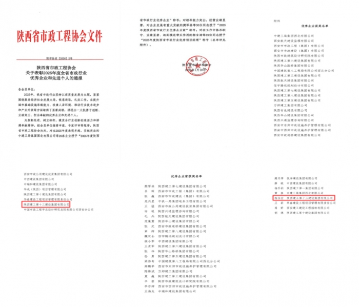1月19日,集團(tuán)獲評(píng)2025年度陜西省市政行業(yè)優(yōu)秀企業(yè)。