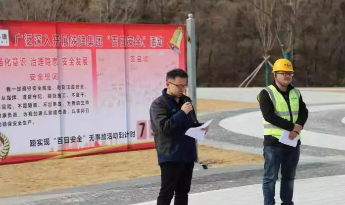 儀式上,陜建集團(tuán)南泥灣紅色文化小鎮(zhèn)建設(shè)項(xiàng)目常務(wù)副經(jīng)理屈曉東安排部署2019年重點(diǎn)安全注意事項(xiàng),并貫穿落實(shí)集團(tuán)公司“百日安全”活動(dòng)的宗旨。會(huì)上各參建單位公司經(jīng)理、項(xiàng)目經(jīng)理積極講述“百日安全”活動(dòng)的重要性。開發(fā)公司工程管理部長(zhǎng)白彥明并發(fā)表講話。