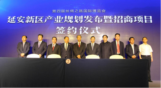 5月13日,西安舉辦第四屆絲綢之路國際博覽會“延安新區(qū)產業(yè)規(guī)劃發(fā)布暨招商項目簽約儀式”。陜西省政協(xié)原副主席、延安精神研究會會長梁鳳民見證簽約。延安市委副書記、市長薛占海致辭,延安市委副書記吳鐵主持。